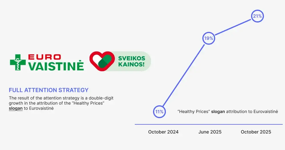 “We needed to deliver more impact without more spend, and attention made that possible. By focusing on attention-led media planning and smarter creative execution, we helped Eurovaistinė see real brand gains. In just 12 months, slogan attribution jumped by 89%, and logo recognition by 33%. Strategic, evidence-backed attention planning isn’t just efficient, it drives real business results.” - Dalius Dulevičius, Director, Attention Strategy & Client Service, Mindshare Lithuania