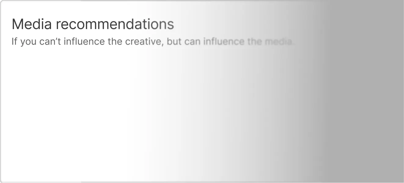 When creative is fixed but media placement is flexible, our AI identifies the optimal platforms and formats where your content will achieve maximum attention and engagement.
